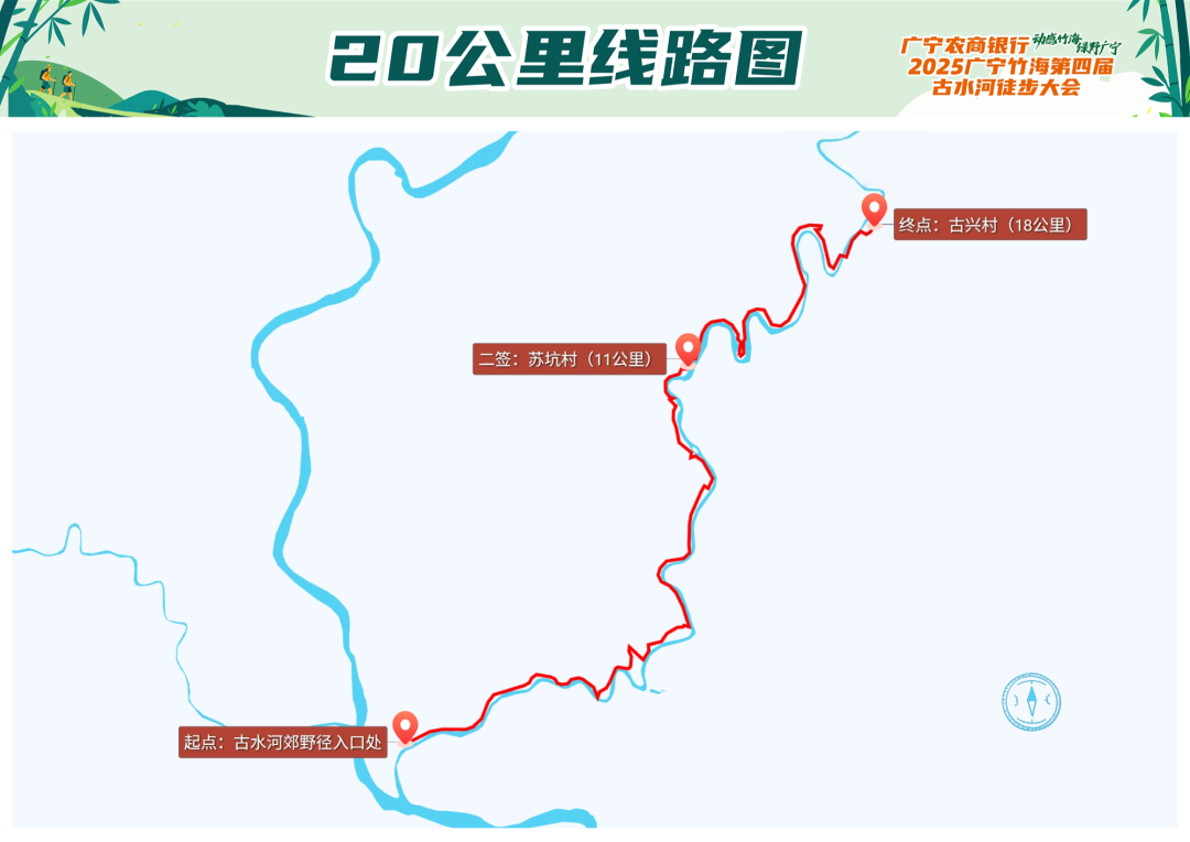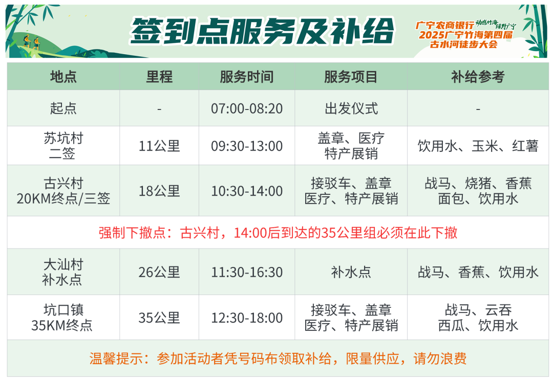 温馨提示:古兴村(20公里组终点)前是没有下撤点和接驳车,请务必量力而行,规划好行程,尤其是准备带小朋友徒步的驴友。